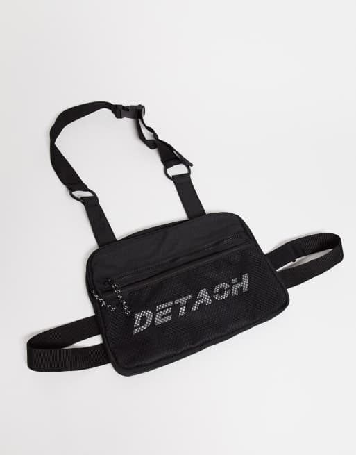 ASOS DESIGN chest harness bag in black with slogan print Very well made.