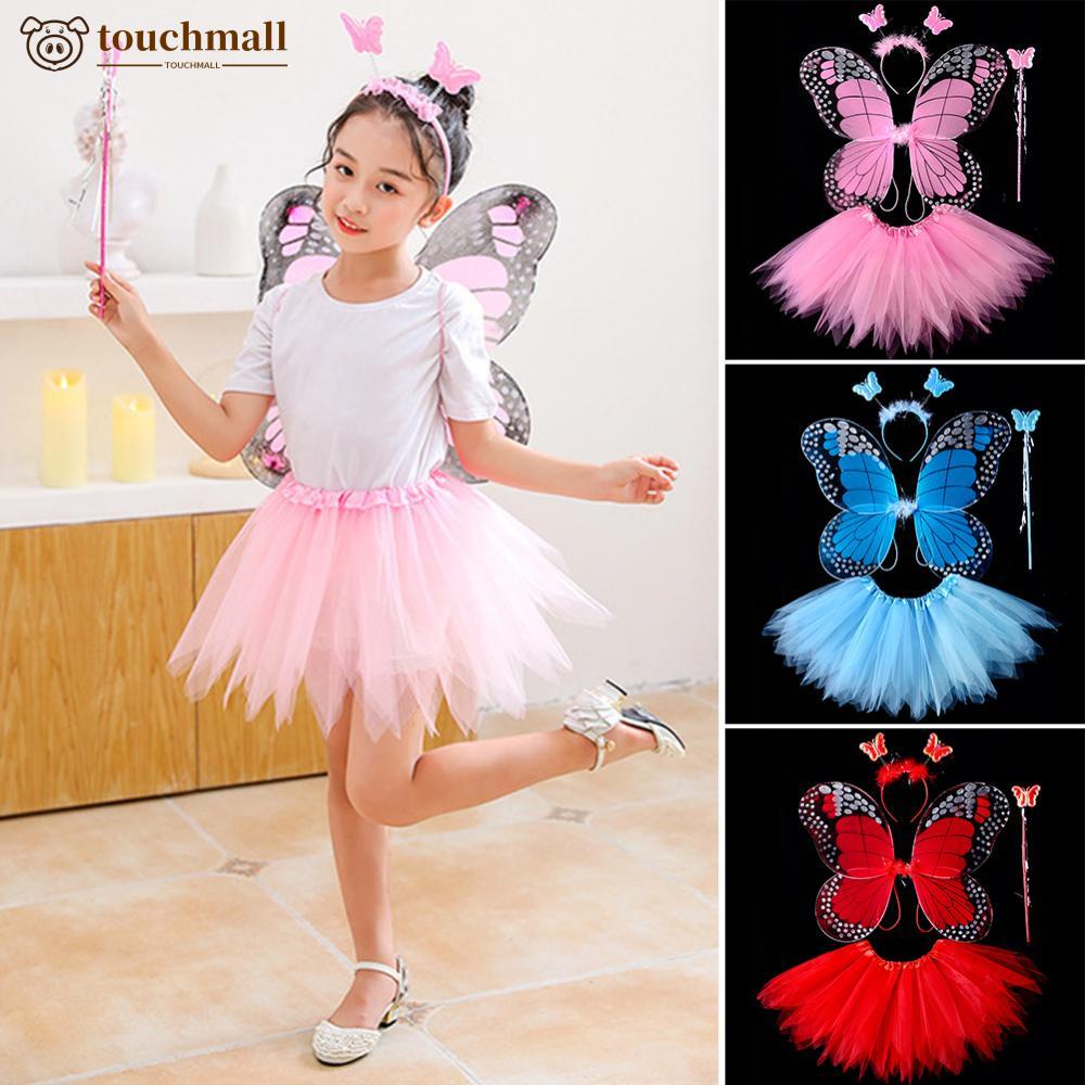 TOUCHMALL 3 4pcs Kids Butterfly Wings Set Girls Butterfly Dress Very well made.