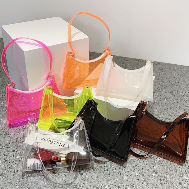 Transparent PVC Shoulder Bag Women Handbag Jelly Clear Beach Tote Very well made.