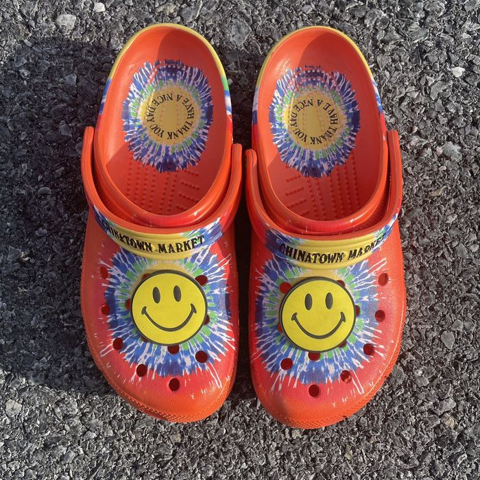 Crocs X Chinatown Market Uo Exclusive Tie dye Smiley Clog in Red Very well made.
