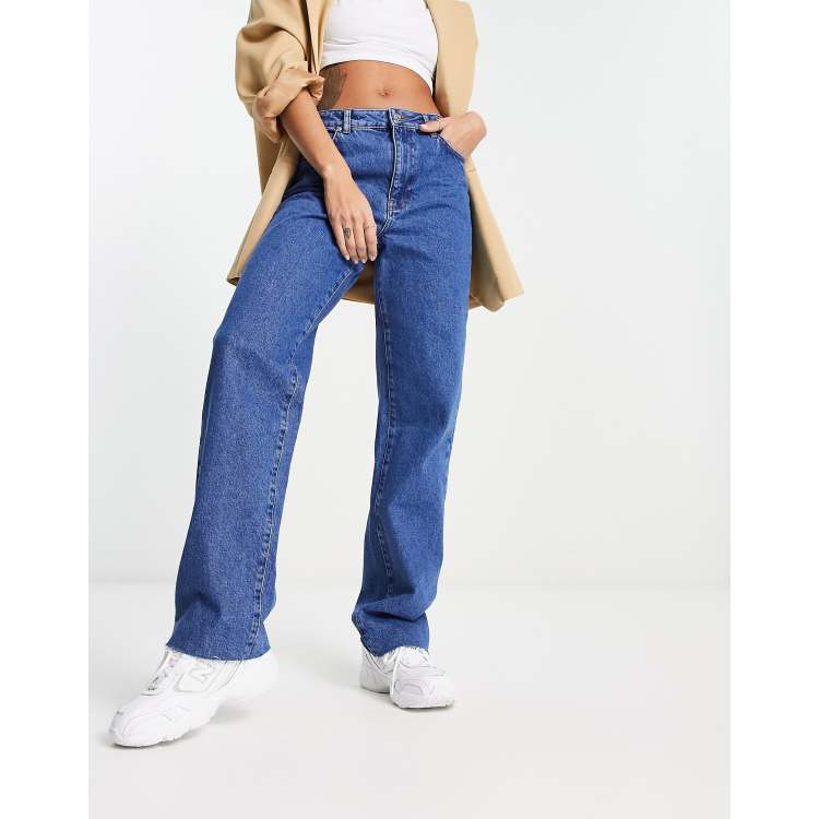 NA KD x Rianne Meijer straight jeans with raw hem in blue wash Very well made.