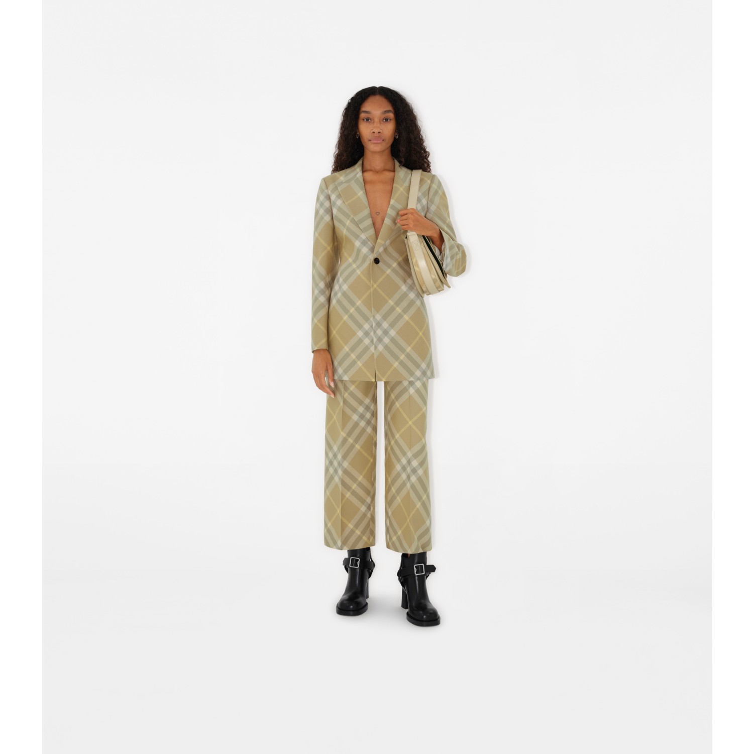 Cropped Check Wool Tailored Trousers in Flax Women Burberry Very well made.