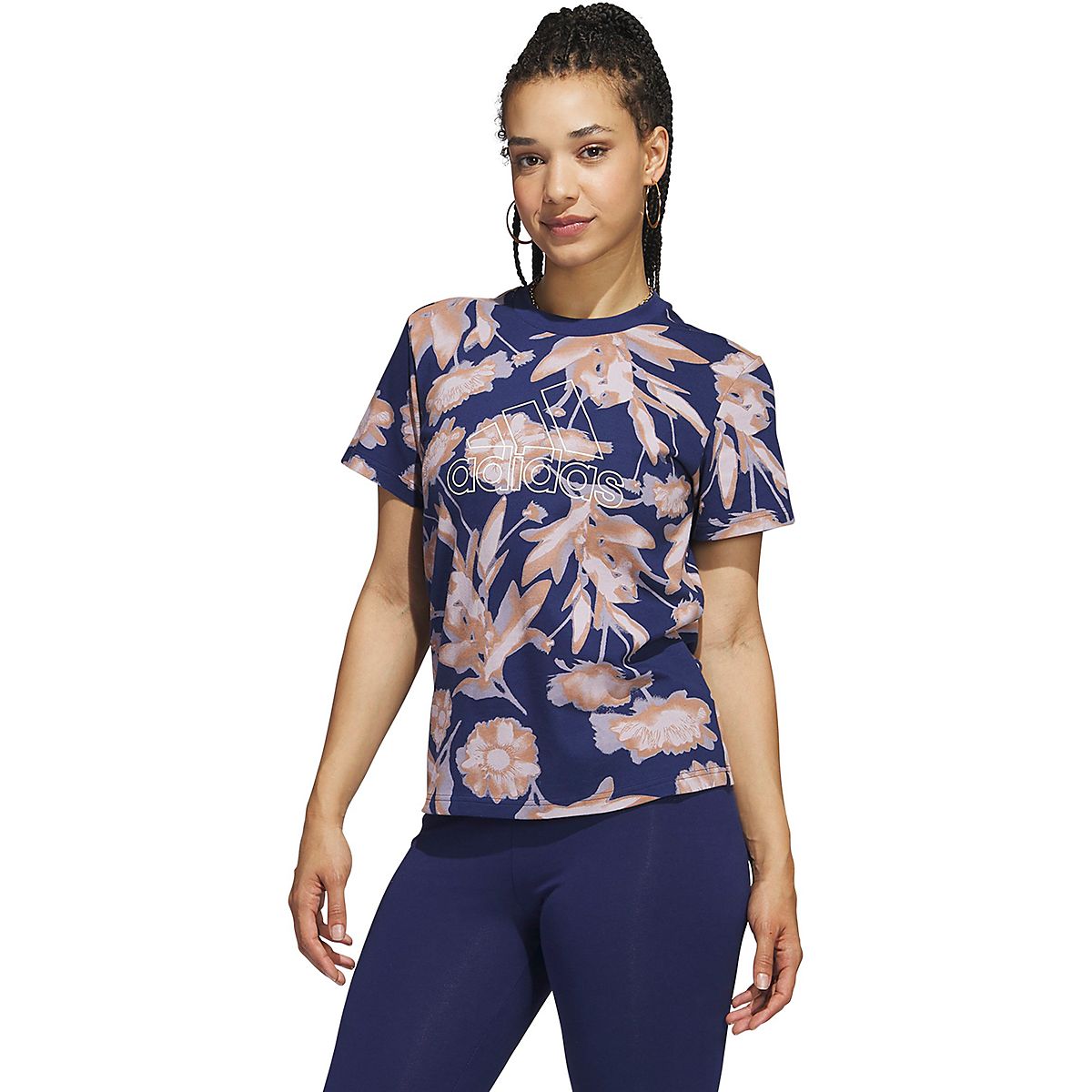 adidas Women s Bloom AOP Graphic Short Sleeve T shirt Academy Very well made.