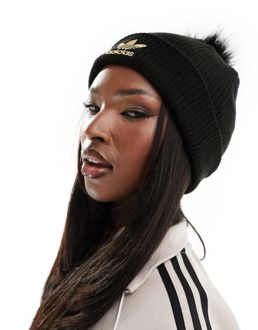 adidas Originals Berretto nero con pompon in pelliccia sintetica Very well made.