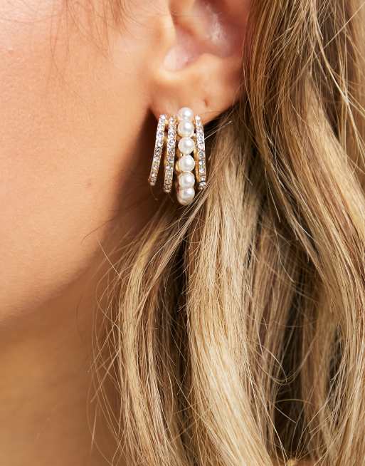 ASOS DESIGN hoop earrings with pearl row in gold tone ASOS Very well made.
