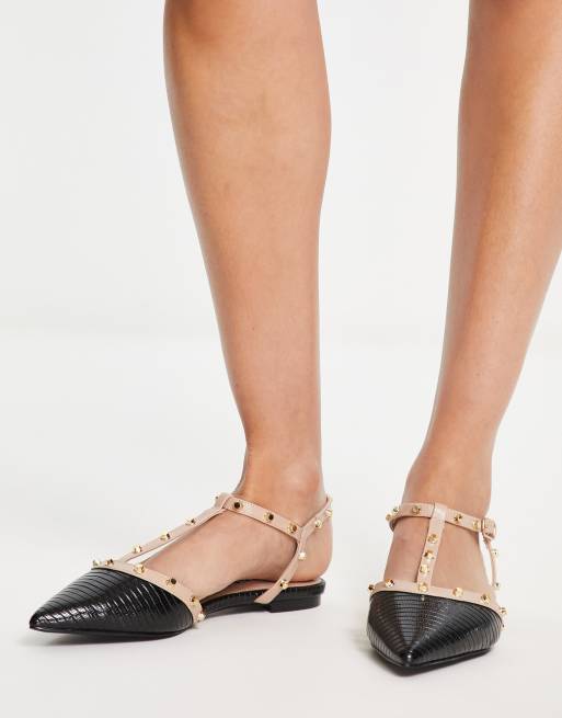 Dune London Cayote pointed flat shoes with stud detail in black leather Very well made.
