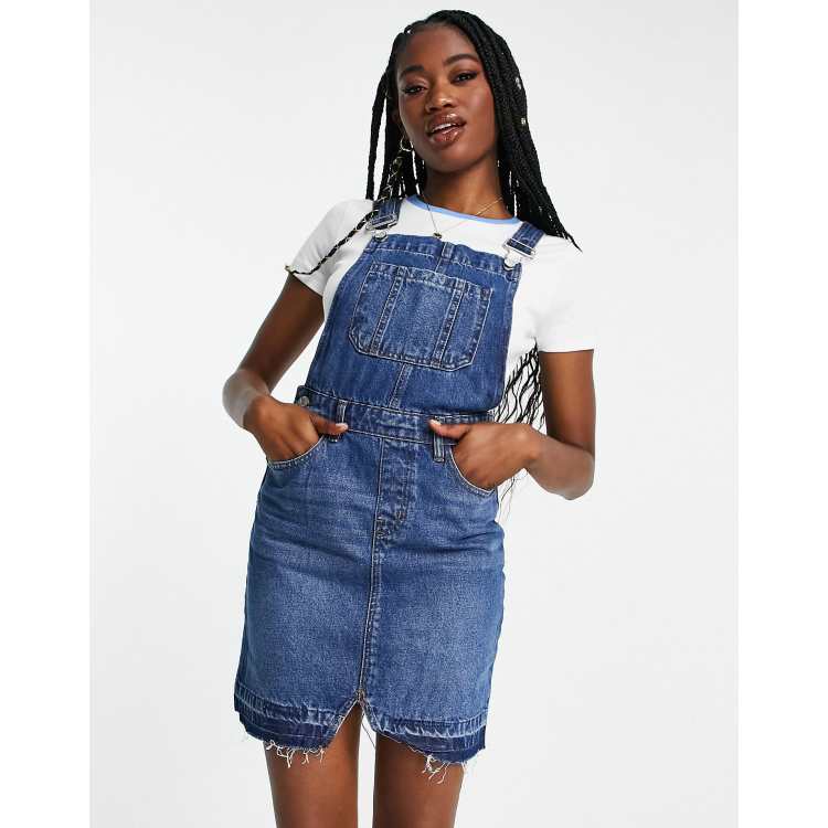 DTT denim dungaree dress with raw hem in blue Very well made.