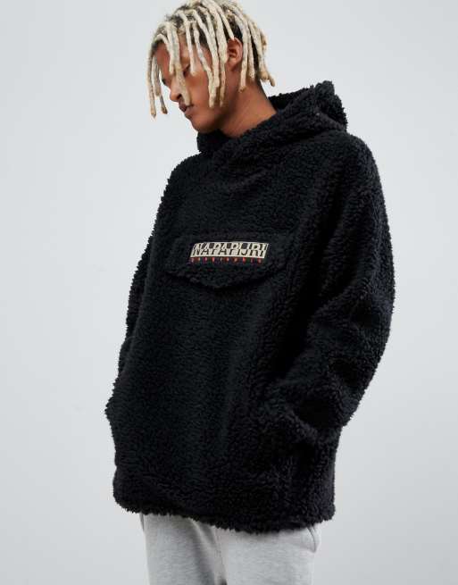 Napapijri Telve Felpa oversize nera con cappuccio in pile borg Tribe Pack Very well made.