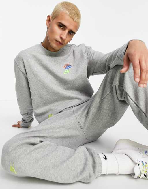 Nike Essential fleece Felpa girocollo con logo multiplo colore grigio Very well made.