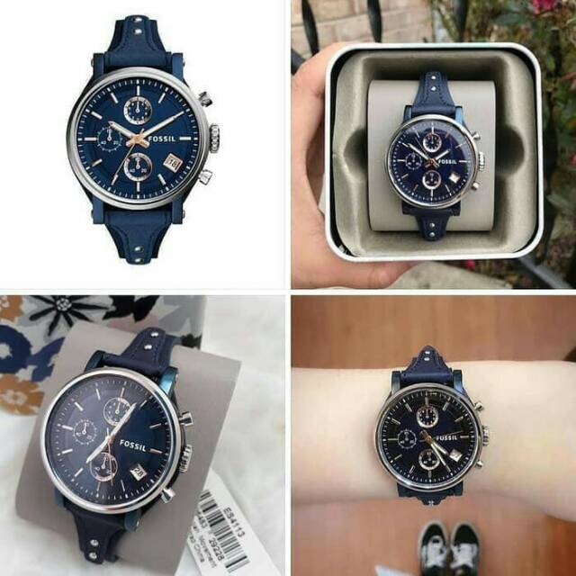 Jam Tangan Fossil Es4113 Boyfriend Sport Chronograph Blue Leather Very well made.