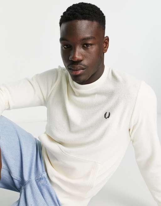 Fred Perry Mens Cable Knit Crew Neck Sweater Ecru White Very well made.