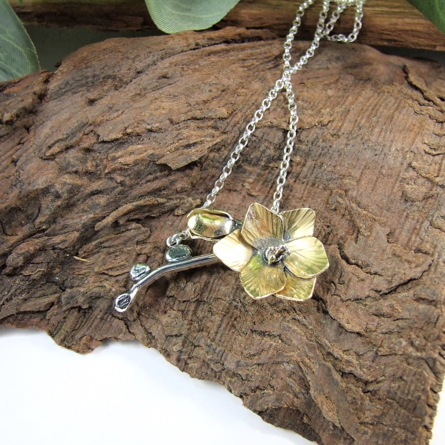 Freesia Flower Pendant Sterling Silver and Brass Floral Necklace Very well made.