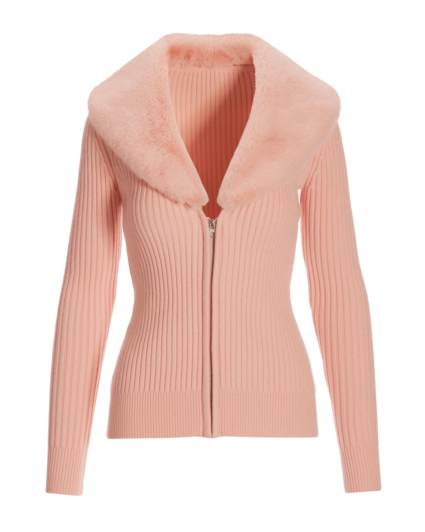 Faux Fur Collar Zip Cardigan Light Plum Very well made.