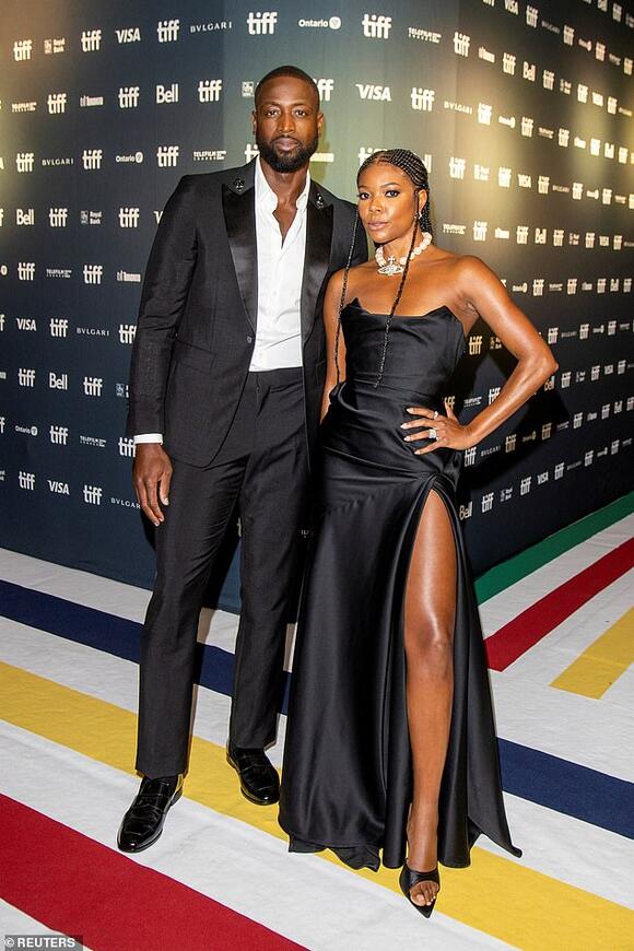 Gabrielle Union sizzles in black gown with thigh high slit as she Very well made.