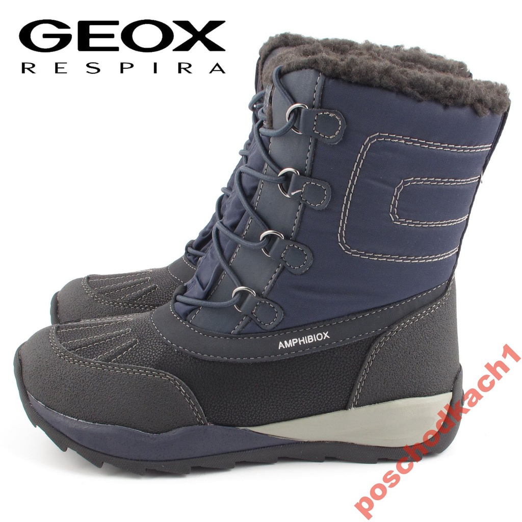 Boys GEOX AMPHIBIOX Winter Boots Black Grey Fuex Fur Lined Youth Very well made.