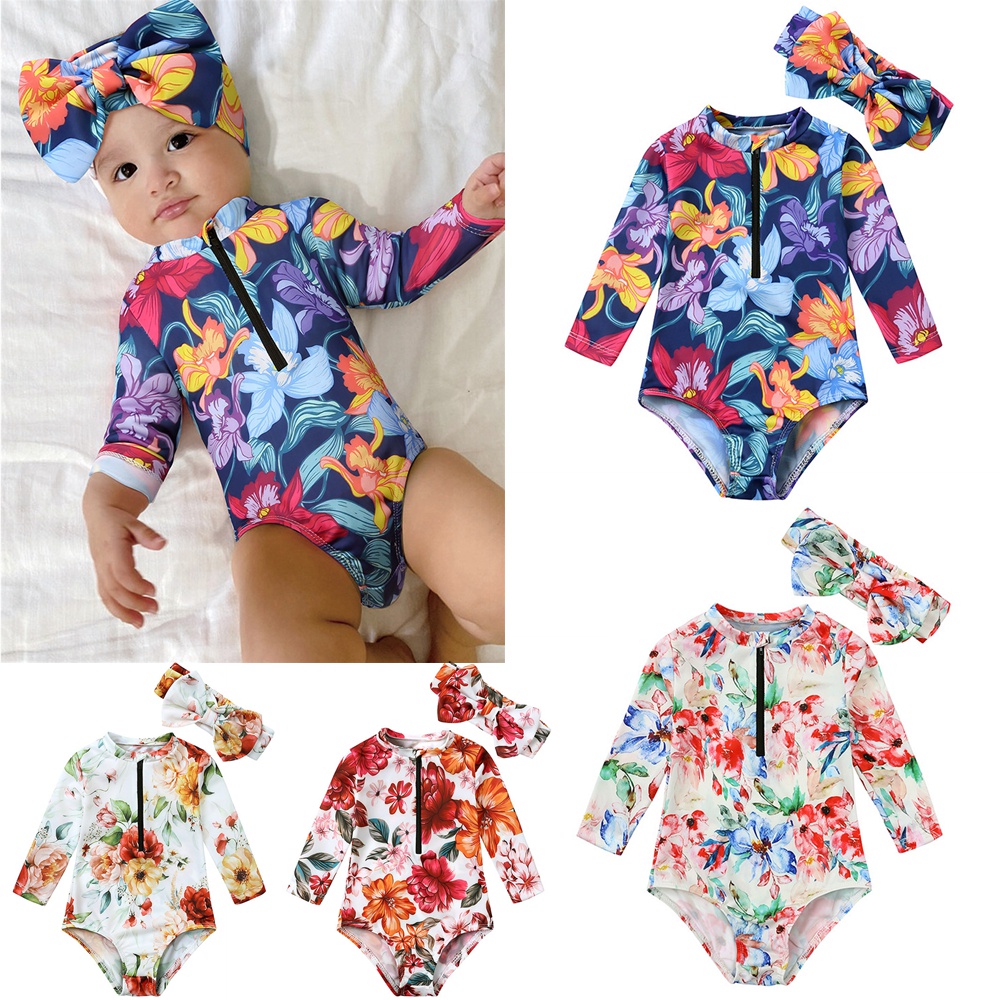 6 18M Baby Swimwear Headband Girls Long Sleeve One Piece Very well made.
