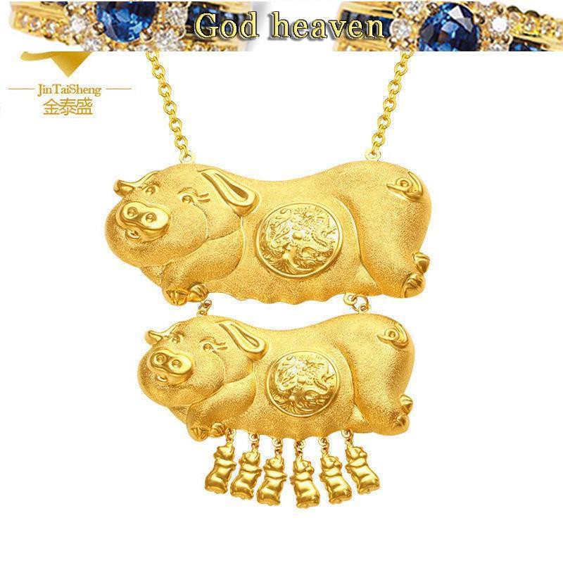 CHOW SANG SANG Chinese Wedding Collection 999.9 24K Solid Gold Price by Weight 12.35g Gold Golden Pigs Necklace for Women and Wedding 84747N 17.7 Very well made.