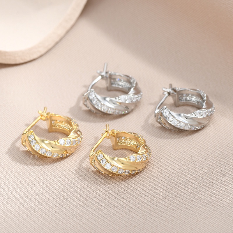 Gold Plated Zircon inlaid Twists Earrings high class C shaped Very well made.