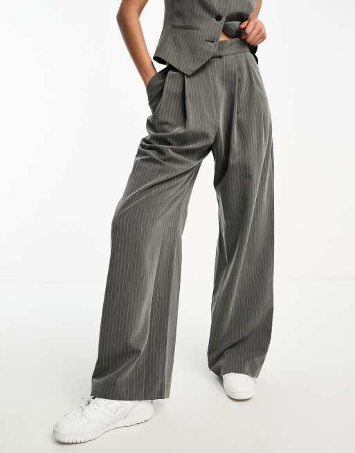 ASOS DESIGN wide leg pleated striped pants in grey Very well made.