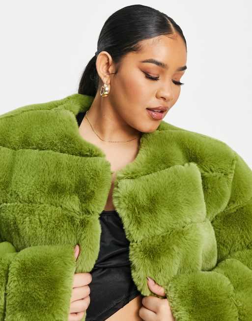 ASOS LUXE Curve cropped faux fur jacket in chartreuse Very well made.