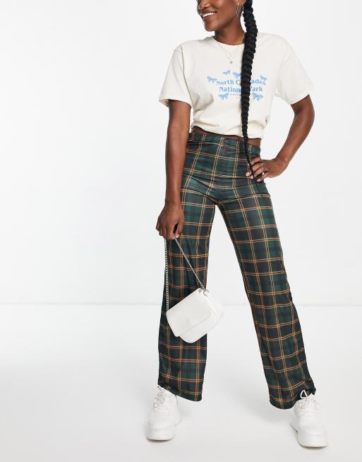 Heartbreak wide legged high waisted pants in green check part of a set Very well made.