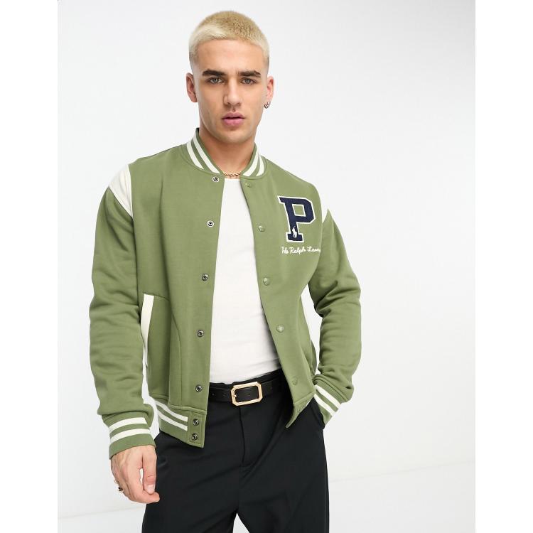 Polo Ralph Lauren x ASOS exclusive collab varsity sweat bomber jacket in olive green with logo Very well made.