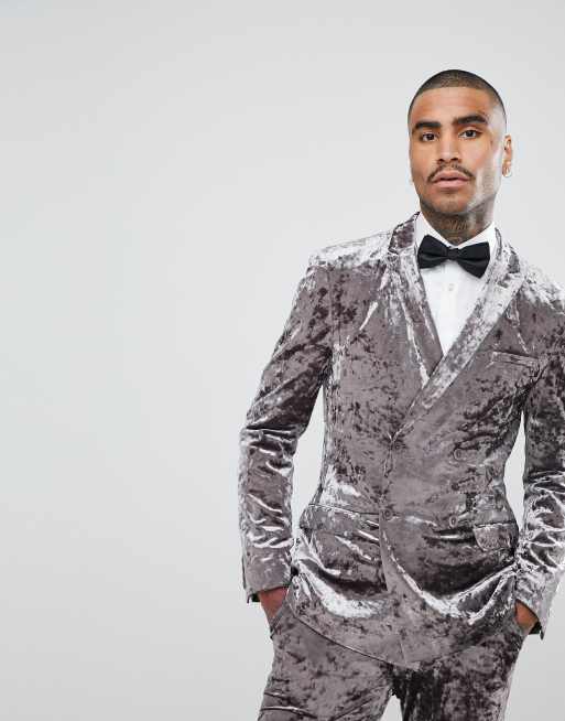 ASOS Super Skinny Double Breasted Tuxedo Jacket In Grey Crushed Velvet Very well made.