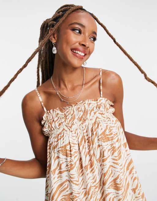 Noisy May exclusive cami trapeze midi dress in cream zebra print Very well made.