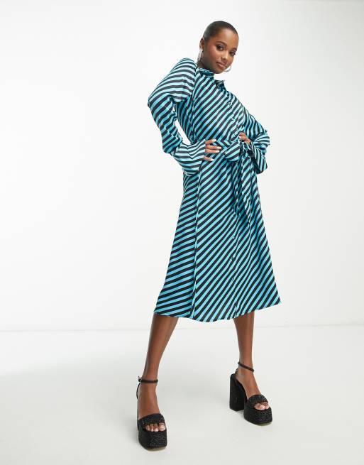 Y.A.S Petite satin maxi shirt dress with tie belt in blue diagonal Very well made.