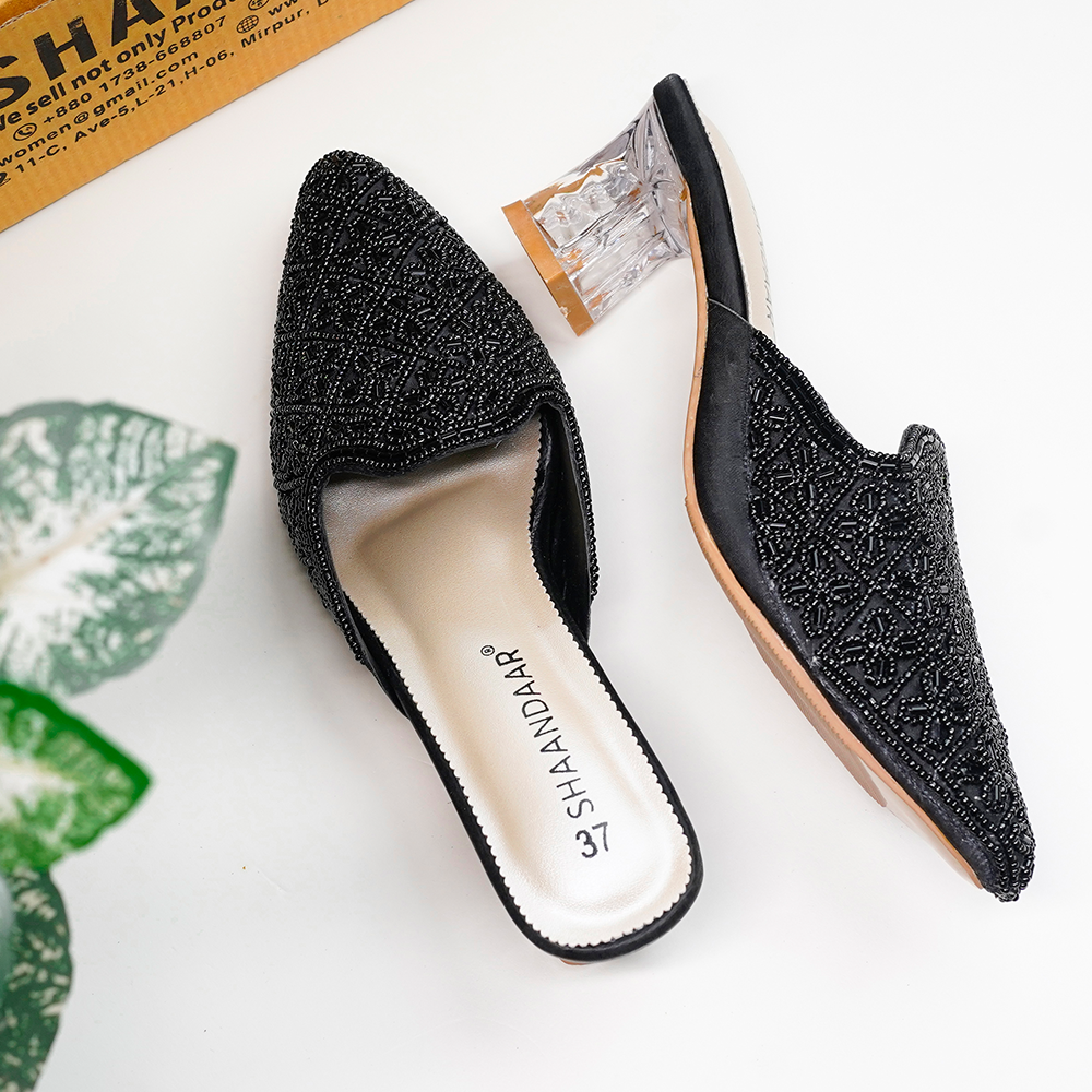 Shaandaar Synthetic Leather Puthi Worked Half Shoes For Women Black Very well made.