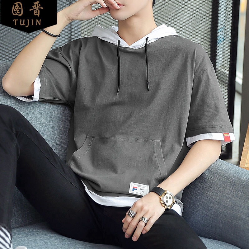 Short Sleeve Men s Summer Thin Half Sleeve Hooded Sweater Men s Very well made.