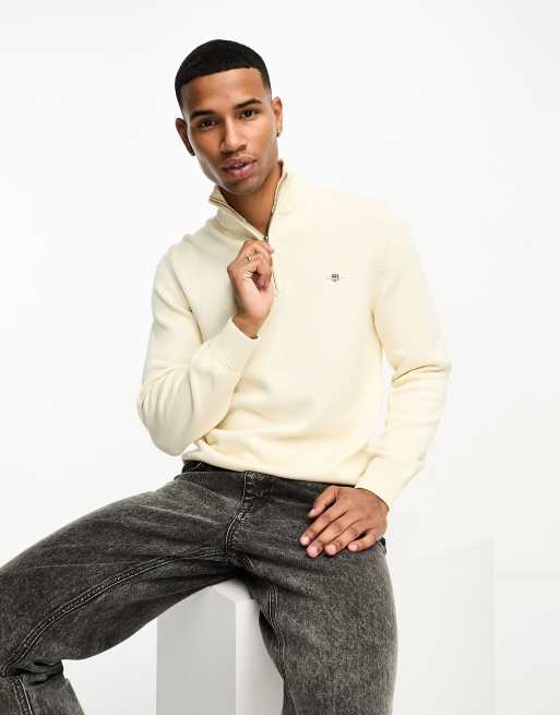 GANT icon logo casual cotton knit half zip jumper in cream Very well made.