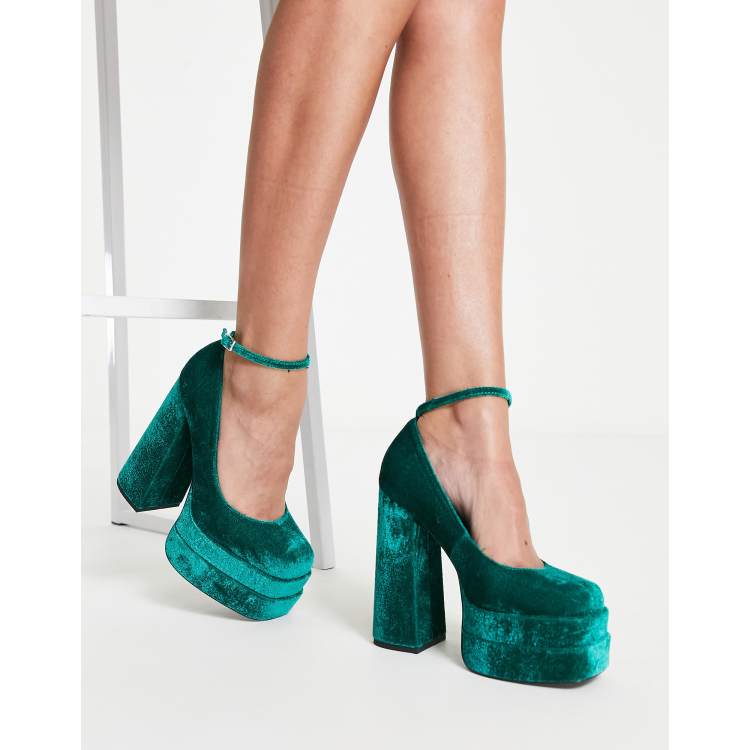 ASOS DESIGN Pistol double platform heeled shoes in teal velvet Very well made.