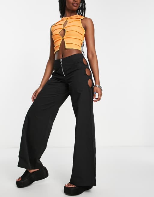 The Ragged Priest low waist Y2K trousers with zip front and hip cut outs Very well made.