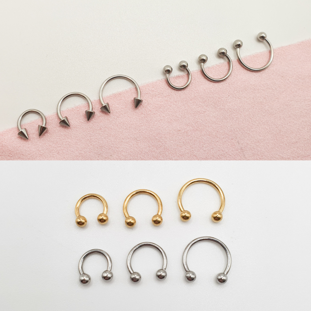 PiercingJak 4 Pairs 1.2 mm Stainless Steel Earrings Lip Nose Nipple Helix Tragus Ear Piercing Septum Ring Horseshoe Circular Barbell Ear Piercing Very well made.