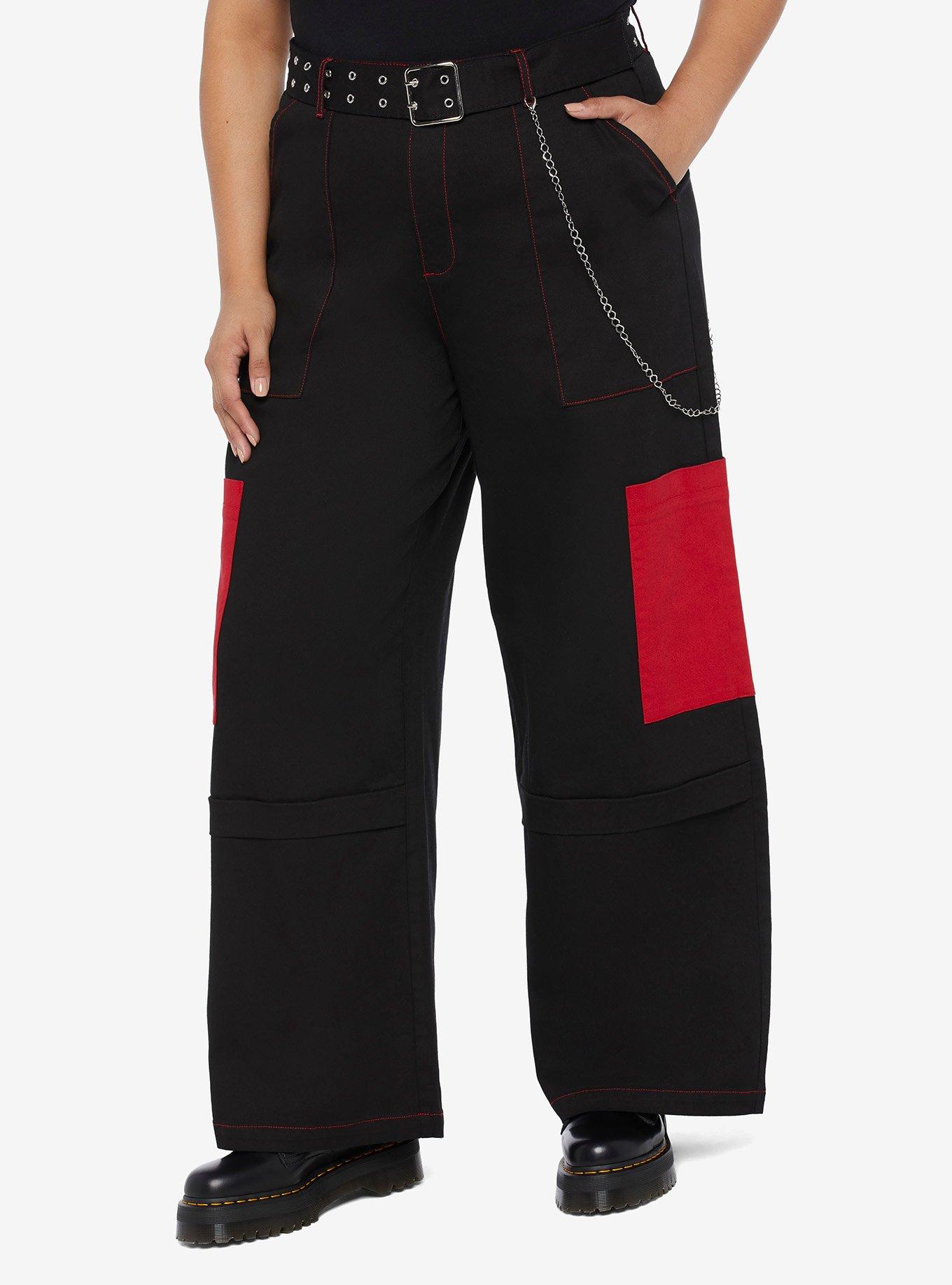 Black Red Straight Leg Cargo Pants Plus Size Very well made.