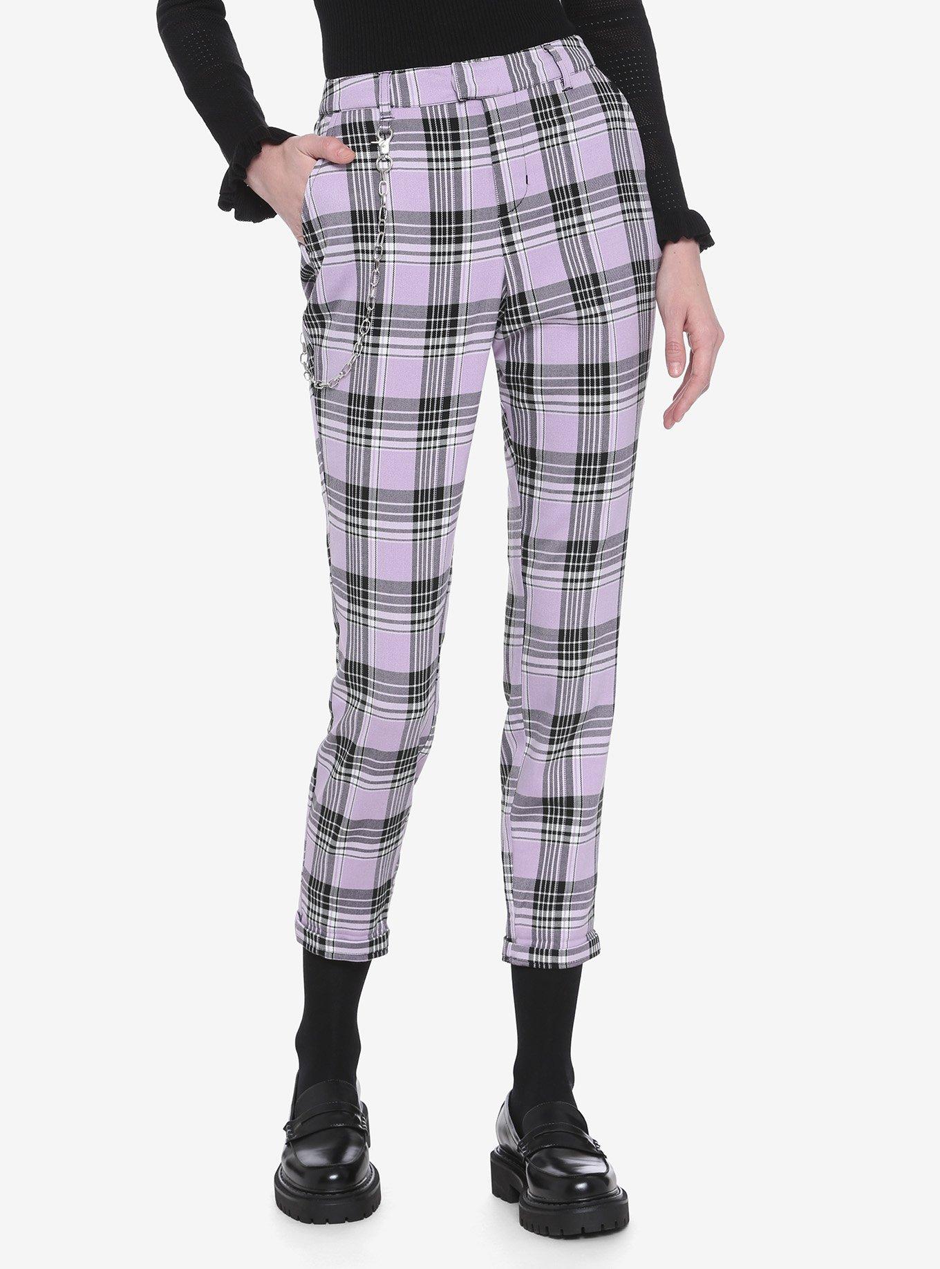 Purple Plaid Pants With Detachable Chain Hot Topic Plaid pants Very well made.