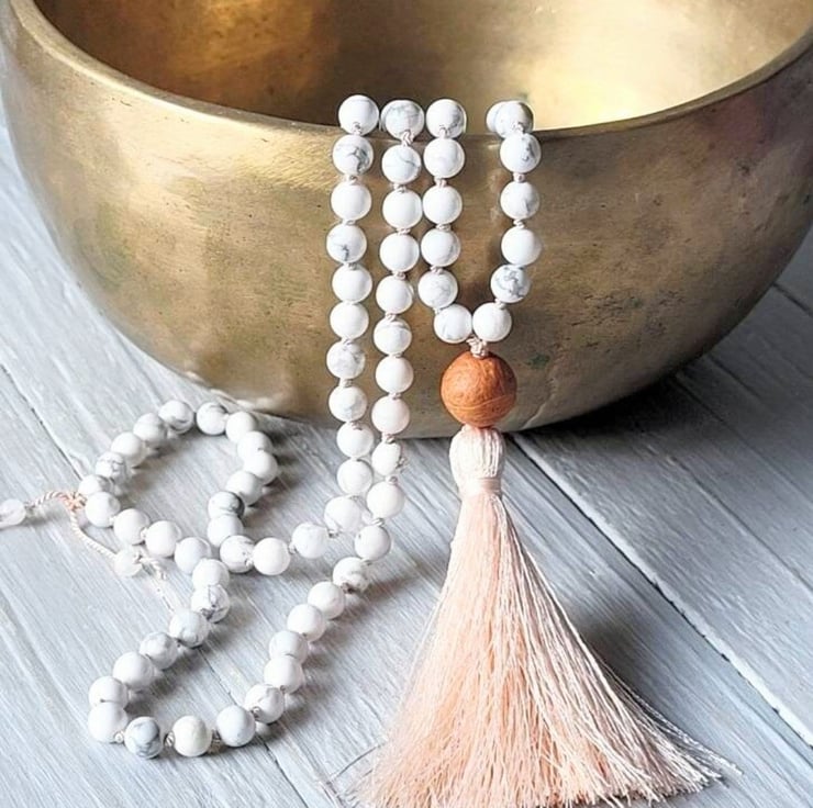 Howlite Mala Necklace 108 Mala Beads White Mala Necklace Very well made.