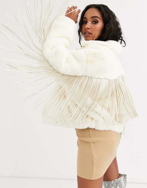 Sixth June oversized bomber jacket in faux fur with tassle back Very well made.