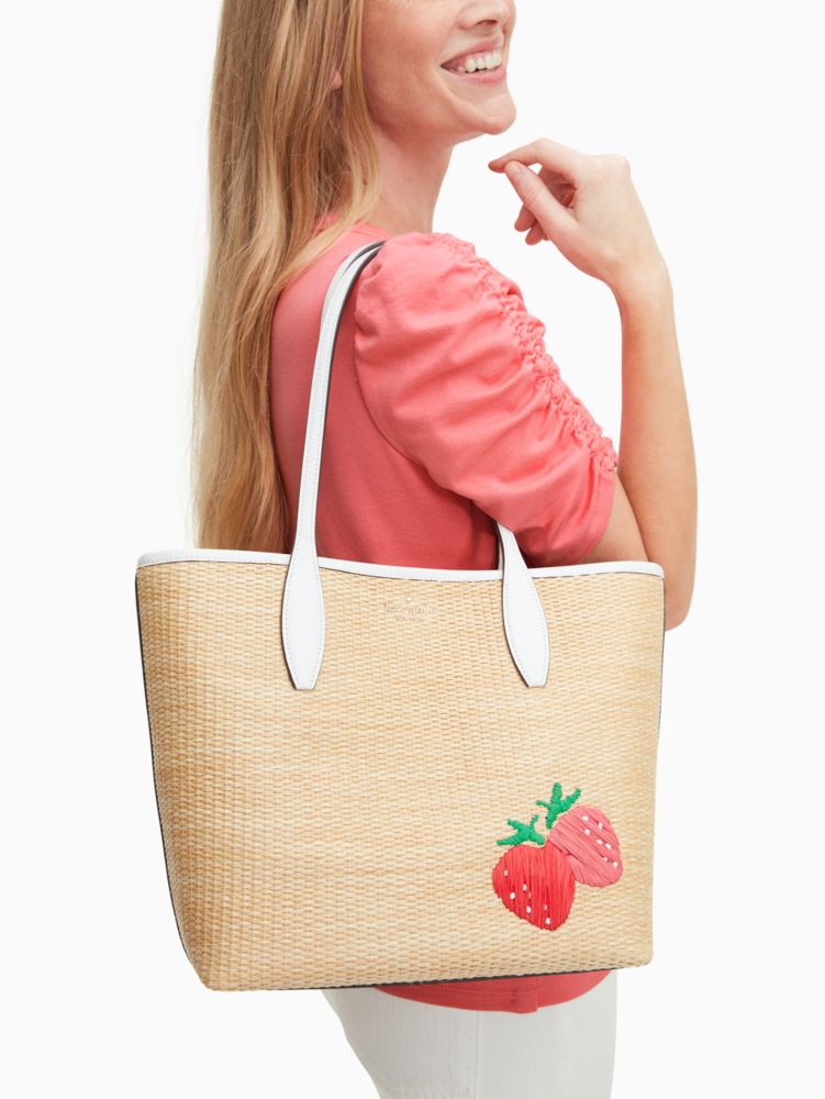 KATE SPADE PICNIC IN THE PARK SMALL TOTE BAG STRAW WHITE LEATHER Very well made.