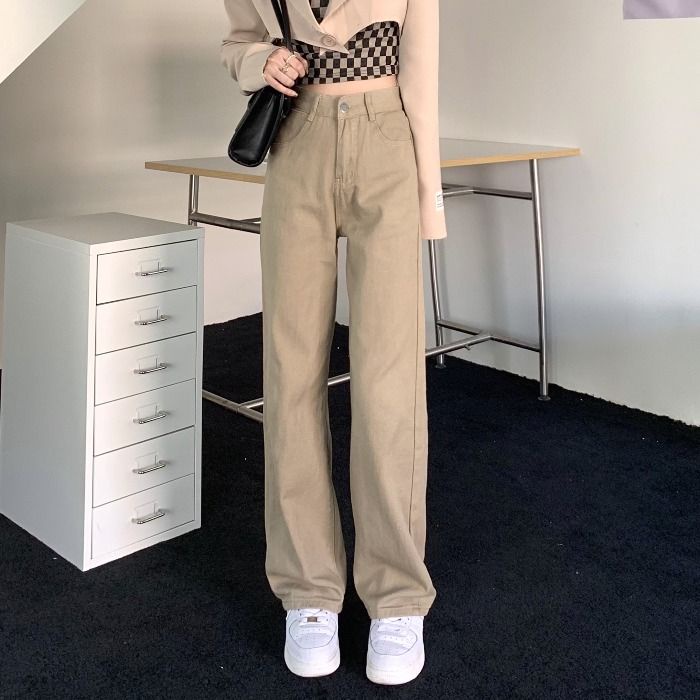 Buy Mid rise Straight Loose Light Khaki Jeans for Women Online in Very well made.
