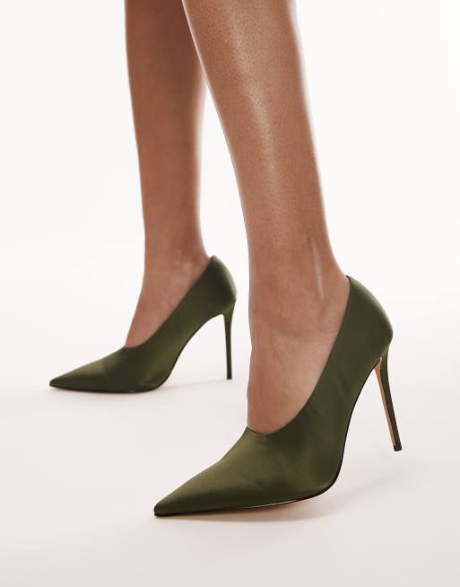 Topshop Violet high vamp heeled pumps in khaki satin ASOS Very well made.