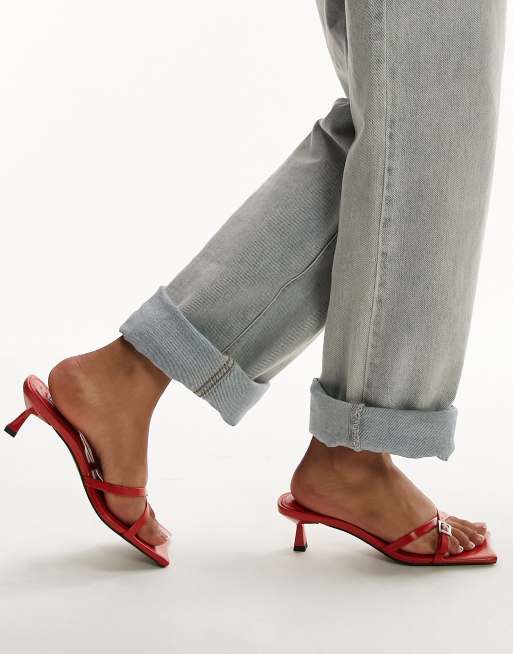 Topshop Crystal premium leather kitten heels with buckle in red ASOS Very well made.