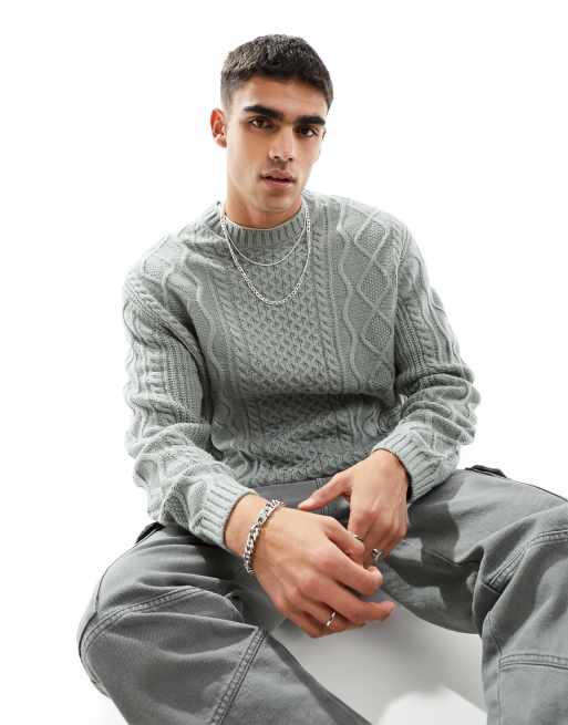 ASOS DESIGN oversized slouchy cable knit jumper in grey Very well made.