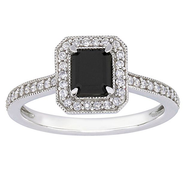 Black Diamond Ring 1 ct tw Cushion cut 14K White Gold Kay Very well made.