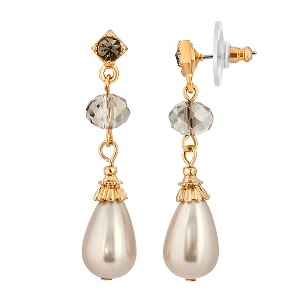 1928 Gold Tone Black Beaded Double Drop Earrings Very well made.