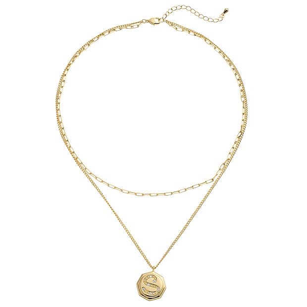 City Luxe Gold Tone Layered Initial Disc Necklace with Cubic Zirconia Very well made.