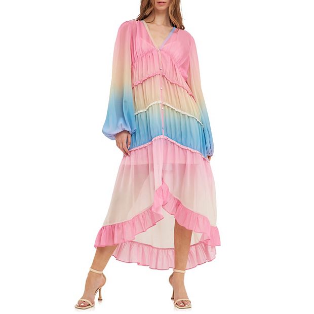 Tie Dye Print Ruffle High Low Dress Very well made.