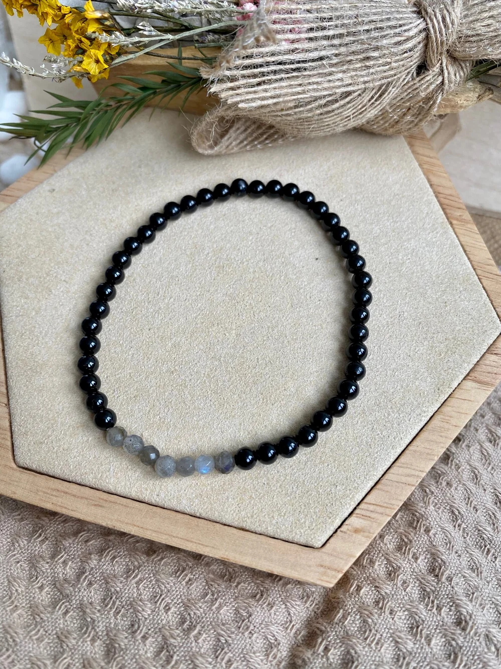 PROTECTION Crystal Remedy Bracelet For Men Premium Series Black Tourmaline Labradorite Stainless Steel Beads Very well made.
