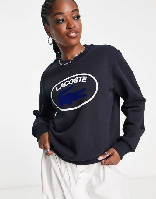 Lacoste Sweatshirt in Schwarz mit beflocktem Logo ASOS Very well made.